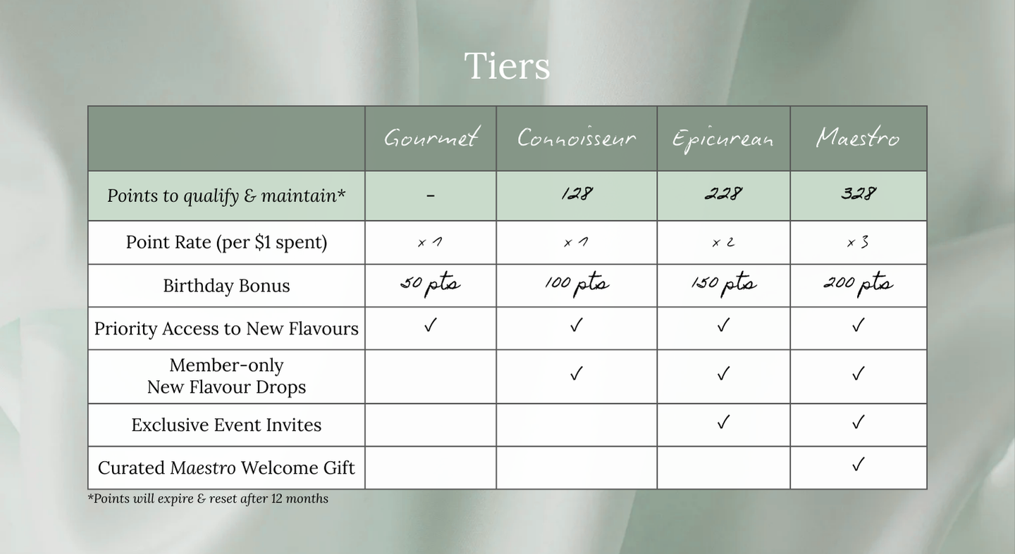 Rewards requiring shipping (e.g. Complimentary butters) must be redeemed together with a purchase or self-collected. We do not ship redemptions separately.